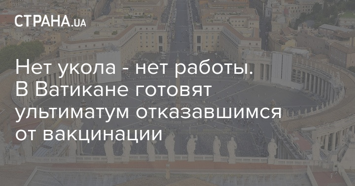 Администрация Ватикана заявила работникам о риске потерять должность в случае отказа от прививки против COVID-19 без уважительных причин.