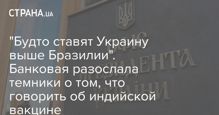"Будто ставят Украину выше Бразилии". Банковая разослала темники о том, что говорить об индийской вакцине