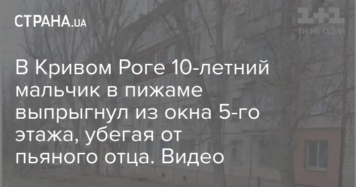 В Кривом Роге 10-летний мальчик выпрыгнул из окна пятого этажа. При падении ребенок получил тяжелые травмы, за его жизнь борются медики. Инцидент произошел в Саксаганском районе города около полуночи 24 февраля. Выпавший из окна ребенок был одет в ночную пижаму. По данным ТСН, мальчик выпрыгнул в окно, убегая от пьяного отца, а тот даже этого не заметил. Когда приехала полиция, он заявил, что сын спит.