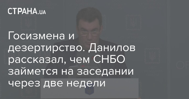 Секретарь Совета национальной безопасности и обороны Алексей Данилов 26 февраля на брифинге после заседания СНБОО рассказал, чем орган займется на новом заседании через две недели. В марте будет заслушан отчет Офиса генеральной прокуратуры, Службы безопасности Украины и Министерства иностранных дел о состоянии дел по государственной измене и дезертирству.