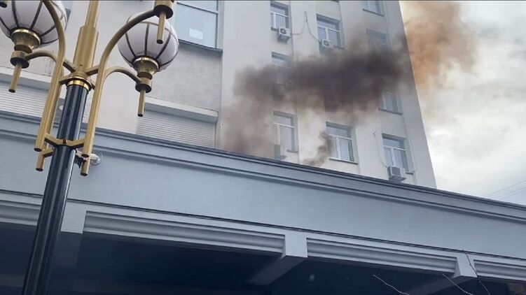 Митингующие в поддержку радикала Сергея Стерненко, которые сегодня проводят акцию в центре Киева, забросали файерами здание Офиса генерального прокурора.