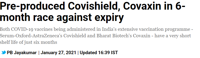 В то же время индийские СМИ еще с января пишут, что Covishield годен к употреблению максимум шесть месяцев с момента производства.