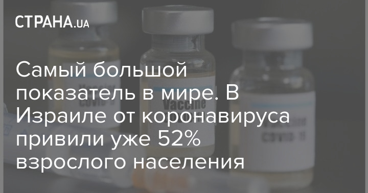 Самый большой показатель в мире. В Израиле от коронавируса привили уже 52% взрослого населения
