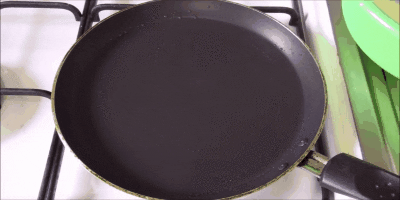 Разогреваем сковороду и обжариваем блин с двух сторон до золотистого цвета.