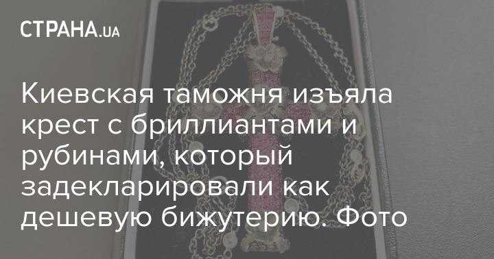 Киевская таможня изъяла крест с бриллиантами и рубинами, который задекларировали как дешевую бижутерию. Фото: Гостаможня