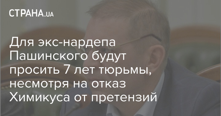 Прокуратура будет настаивать в суде на семилетнем сроке наказания для  экс-депутата Верховной Рады Сергея Пашинского ("Народный Фронт"), стрелявшего в жителя Киевской области Вячеслава Химикуса, который получил компенсацию от бывшего нардепа и отказался от претензий к нему.