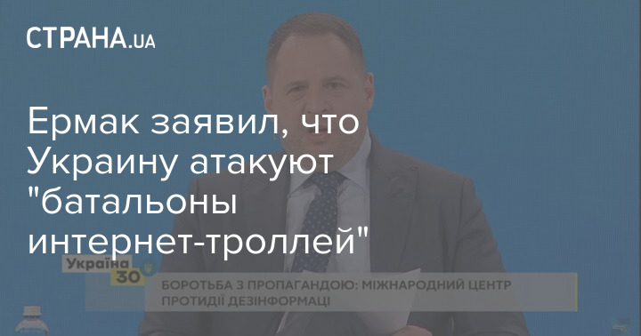 Глава Офиса президента Андрей Ермак заявил, что против Украины ведется информационная война, в ходе которой используются "батальоны интернет-троллей" и "пропагандистские снаряды".