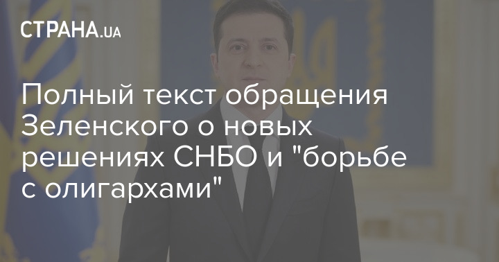 Полный текст обращения Зеленского о новых решениях СНБО и "борьбе с олигархами"