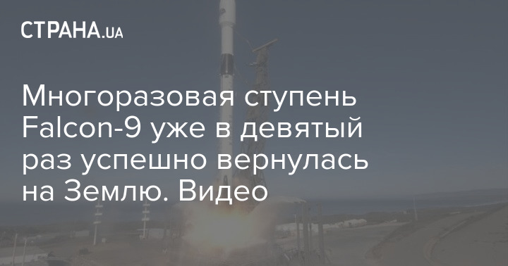 Многоразовая ступень Falcon-9 уже в девятый раз успешно вернулась на Землю. Видео