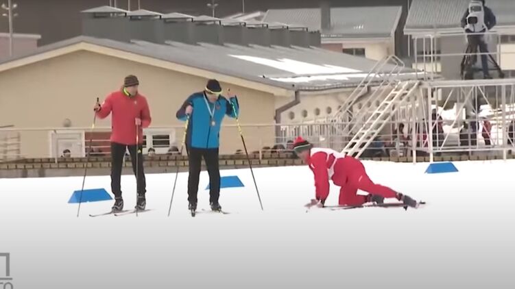 Лукашенко выиграл лыжную гонку после того, как его соперник трижды упал перед финишем. Видео