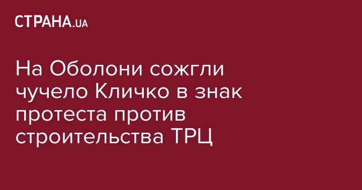 Жители Оболони собрались вчера вечером в середине трамвайного круга у одноименной станции метро, где и сожгли чучело мэра Киева Виталия Кличко "по давним Языческим верованиям". Противники возводящегося торгового центра кричали, что "такое будет со всеми, кто решится на строительство", выкрикивали лозунги "Москаляку на гілляку" и "гори-гори ясно"...