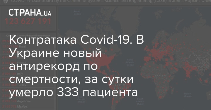 Контратака Covid-19. В Украине новый антирекорд по смертности, за сутки умерло 333 пациента