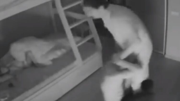 На обнародованном видео можно рассмотреть, что инцидент происходит в детской комнате, где на двухярусной кровати лежат дети. Мужчина с остервенением хватает женщину за волосы и вытаскивает из комнаты. Все происходит под испуганные крики детей "Не надо" Мама! Папа". Вскочившие с кровати малыши бегут следом за родителями.