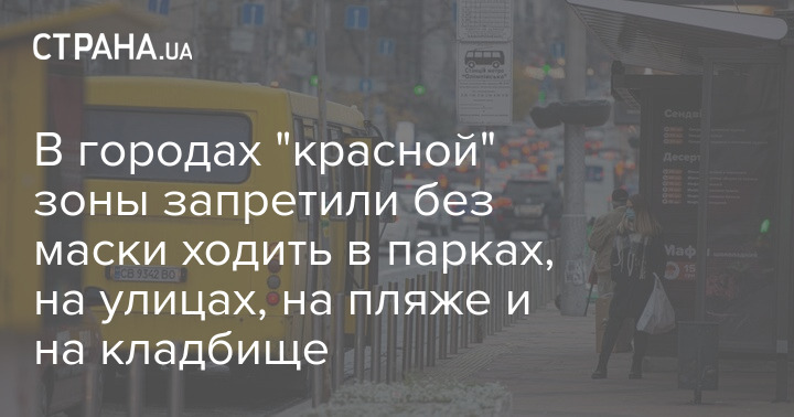 Согласно изменениям, в областях Украины, которые находятся в "красной" зоне карантина запрещено пребывание на территориях общественного пользования без одетых защитных масок или респираторов.