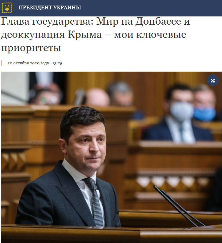 И, наконец, главное. На официальном сайте Президента Украины слово "Донбасс" содержится в 30 материалах, среди которых есть и прямая речь Владимира Зеленского.