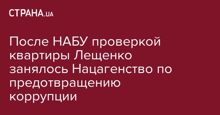 После НАБУ проверкой квартиры Лещенко занялось Нацагенство по предотвращению коррупции