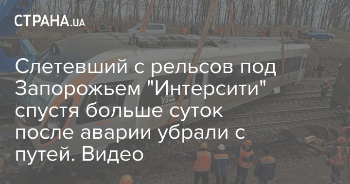 Слетевший с рельсов под Запорожьем "Интерсити" спустя больше суток после аварии убрали с путей. Видео