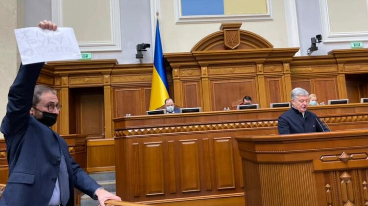"Порохи начали, как обычно, врать с трибуны, а после того, как я показал Порошенко его цитату с Путиным: "Жму руку, обнимаю!" члены фракции начали травить меня лично. Буллинг ин Рада ин экшн ("Буллинг в Раде в действии" на англ - Ред.). Договорились до того, что я нетрезв", - написал нардеп.