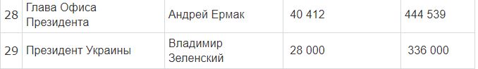 Рейтинг возглавляют силовики и правоохранители, затем министры. Меньше всего зарплата в аппарате Верховной Рады и Офисе президента. Одна из самых скромных зарплат у президента, который получает в месяц тысячу долларов, и главы его Офиса.