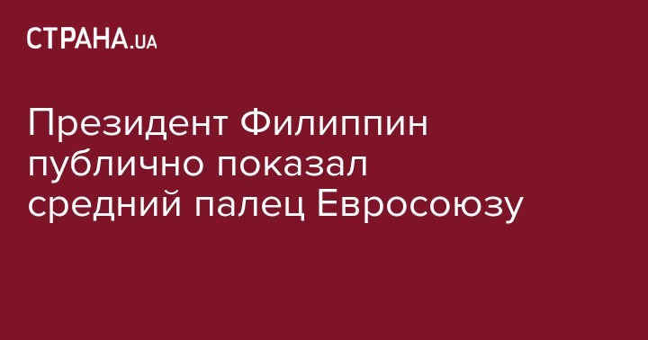 Во вторник, 20 сентября, скандальный президент Филиппин Родриго Дутерте вновь привлек внимание своими эксцентричными поступками. В этот раз он показал средний палец Евросоюзу. Об этом сообщает американское издание Inquirer.
