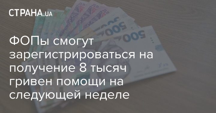 ФОПы смогут зарегистрироваться на получение 8 тысяч гривен помощи на следующей неделе