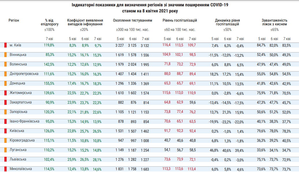 Согласно утвержденным правилам, регион относят к "красной" зоне карантина, если один из пяти показателей по коронавирусу в течение трех дней подряд не соответствует допустимому уровню. На сегодня это не только Хмельницкая и Запорожская области, которые Государственная комиссия по ТЭБ и ЧС отправила в "красную" зону с 9 апреля, но и еще три региона.