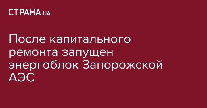 После капитального ремонта запущен энергоблок Запорожской АЭС