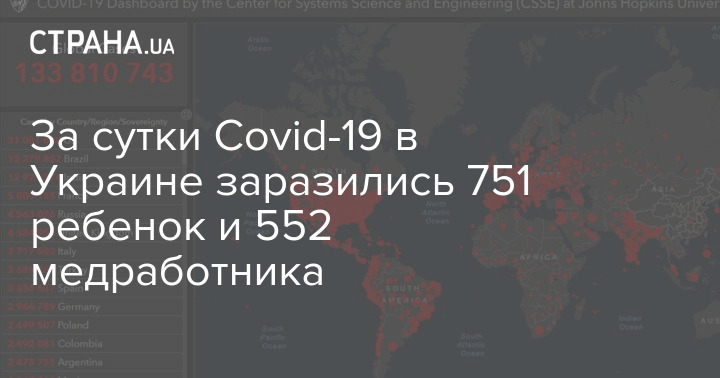 Среди новых зараженных 751 ребенок и 552 медработника.
