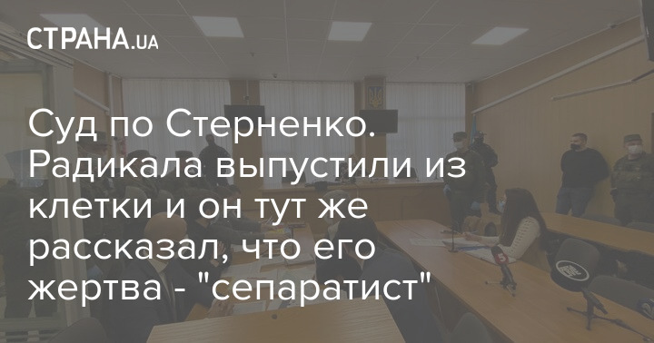 Стерненко и его подельника Руслана Демчука выпустили из стеклянной клетки в зале суда. Радикал обратился к судьям и заявил, что Сергей Щербич, которого он похищал, состоял в партии "Родина", потому якобы является сепаратистом.