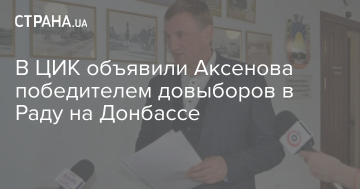 Центральная избирательная комиссия установила результаты промежуточных выборов народного депутата в округе №50 (г.Покровск Донецкой области), победу одержал Добропольский городской голова Андрей Аксенов, который получил 19 тысяч 949 голосов избирателей. Об этом сообщается на странице Гражданской сети "Опора" в пятницу.