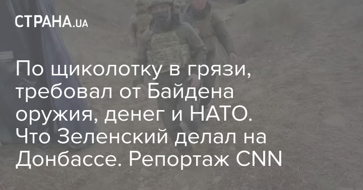 "На линии фронта на востоке Украины президент Украины Владимир Зеленский, по щиколотку в густой черной грязи, незаметно движется со своими войсками в гуще траншей и туннелей, образующих напряженную линию фронта на востоке его страны...