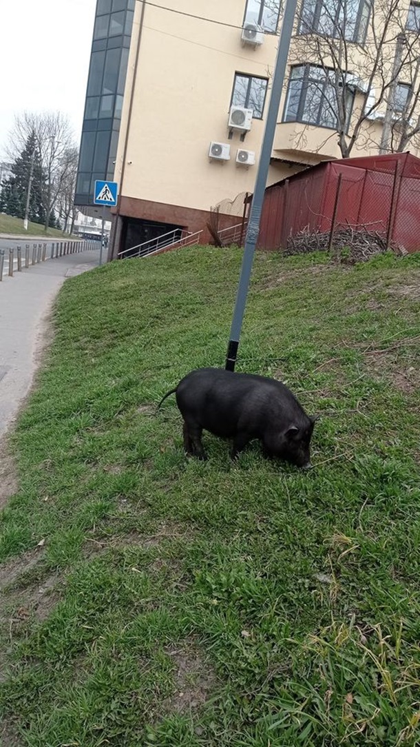 В Виннице гуляющая по центру города молодая вьетнамская свинья стала звездой соцсетей.