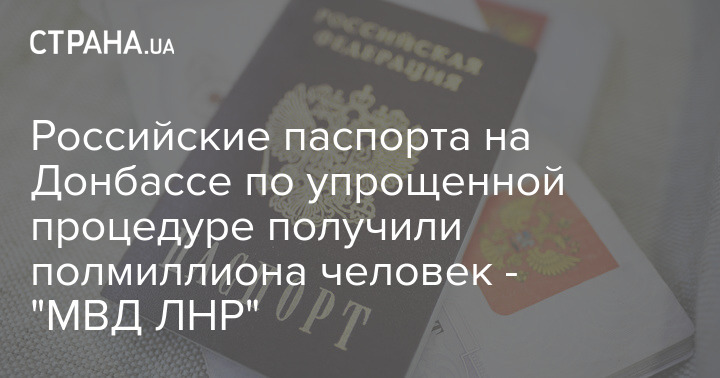 Российские паспорта на Донбассе по упрощенной процедуре получили полмиллиона человек - "МВД ЛНР"