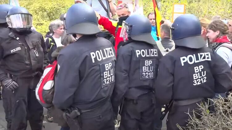 В Берлине акция протеста переросла в стычки с полицией. Скриншот из видео