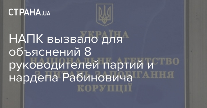 Национальное агентство по предупреждению коррупции (НАПК) вызвало восемь руководителей политических партий и депутата от ОПЗЖ Вадима Рабиновича для дачи объяснений из-за нарушения закона "О предотвращении коррупции".