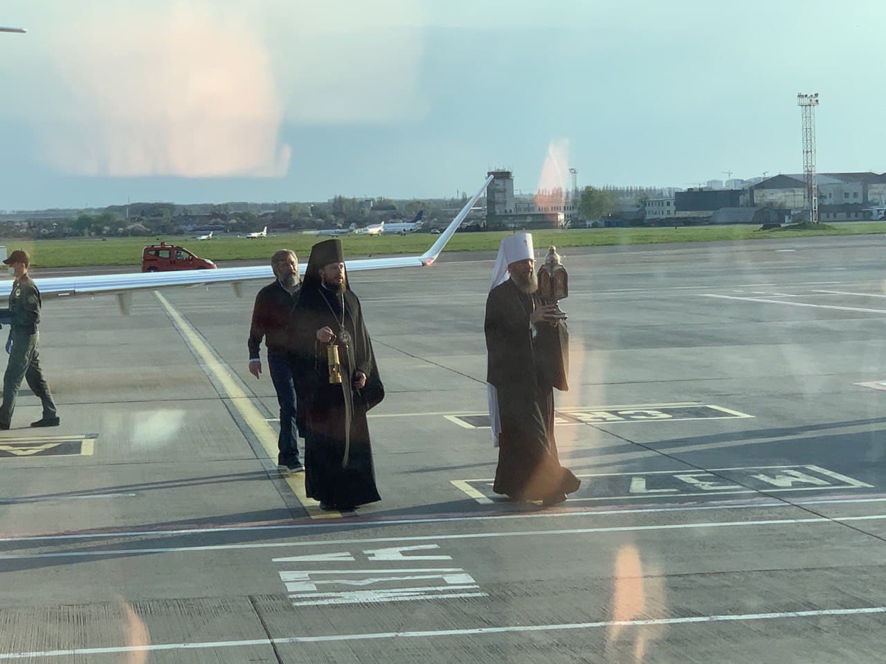 Огонь доставила делегация Украинской православной церкви (УПЦ). Встреча проходила в аэропорту "Жуляны". По приезду в Киев Благодатный огонь будет передан представителями епархий УПЦ во все уголки Украины.