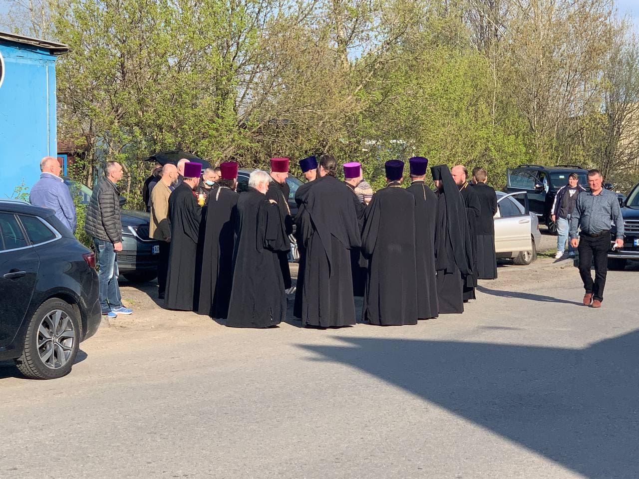 17:50 В аэропорту Жуляны, возле пункта пропуска в терминал B, собираются священнослужители, чтобы встретить Благодатный огонь.