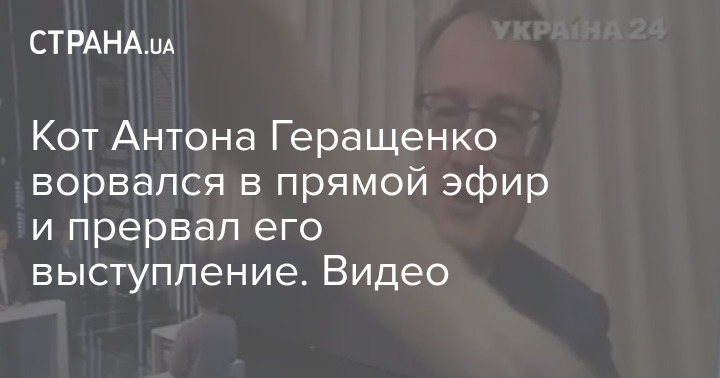 Антон Геращенко был в прямом эфире, когда его речь прервал домашний рыжий кот. Скриншот из видео