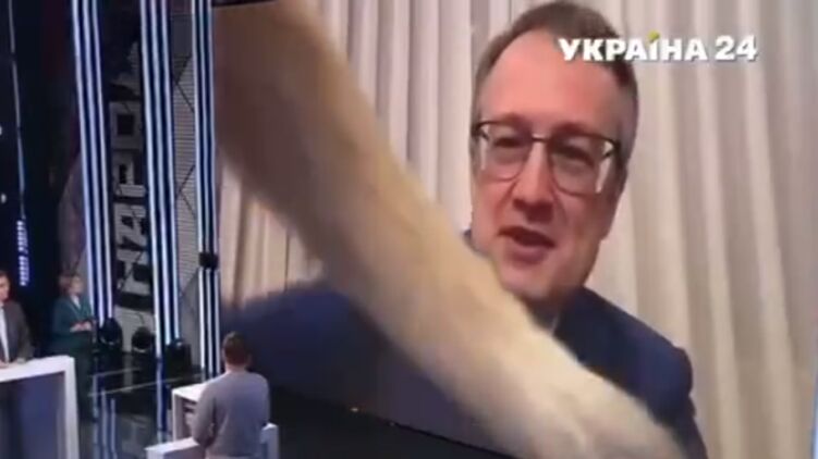 Кот заместителя министра внутренних дел Антона Геращенко чуть не сорвал его выступление в прямом эфире. Курьезный инцидент произошел во время программы "Народ против". Когда Геращенко по видеосвязи вышел в эфир, его кот показал свой хвост в кадре, мешая при этом замглаве МВД выступать.