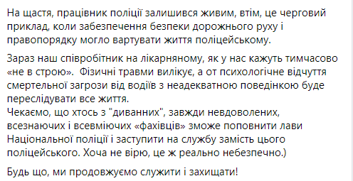 Водителя задержали в порядке ст. 208 Уголовного процессуального кодекса Украины и поместили в изолятор временного содержания. Сейчас правонарушителю инкриминируют ст. 348 УК - убийство или покушение на убийство работника правоохранительного органа или его близких родственников в связи с выполнением этим работником служебных обязанностей. Ему грозит лишение свободы на срок от девяти до пятнадцати лет или пожизненное заключение.