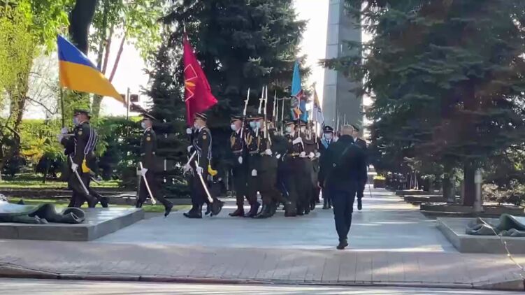 Президент Украины Владимир Зеленский к 08:30 Дня Победы 9 мая 2021 года уже покинул парк Вечной Славы. Весь процесс с возложением цветов длился не более 10 минут, после чего глава державы уехал.