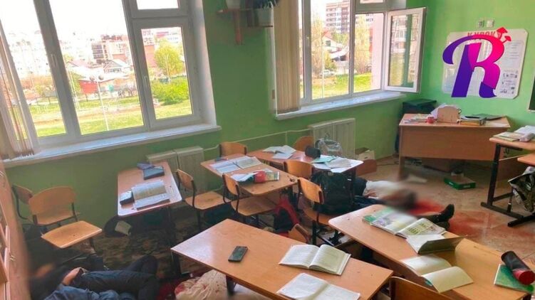 Попавшее в интернет фото сделано в одном из классов сразу после расстрела и людям со слабой психикой лучше его не рассматривать. На снимке видно, как на залитом кровью полу лежат расстрелянные ученики. Несколько - возле последнего ряда парт и не менее двух - между учительским столом и первой партой.