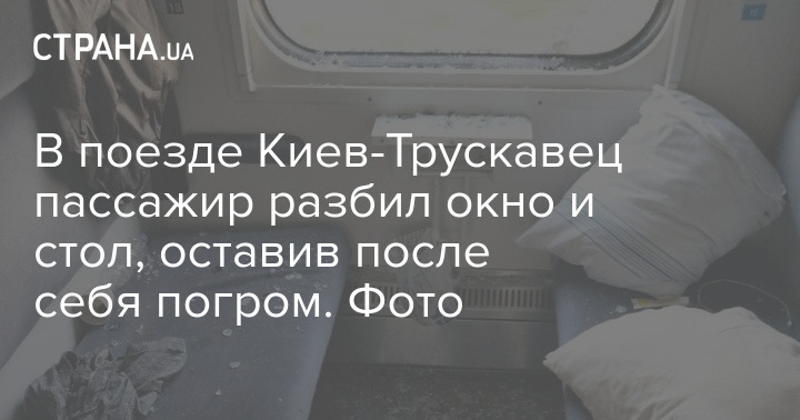 В поезде номер 49 "Киев-Трускавец" пассажир устроил погром в купе. Он разбил окно, повредил стол и порвал постель. Мужчину задержали, а в вагоне устраняют последствия беспорядка.