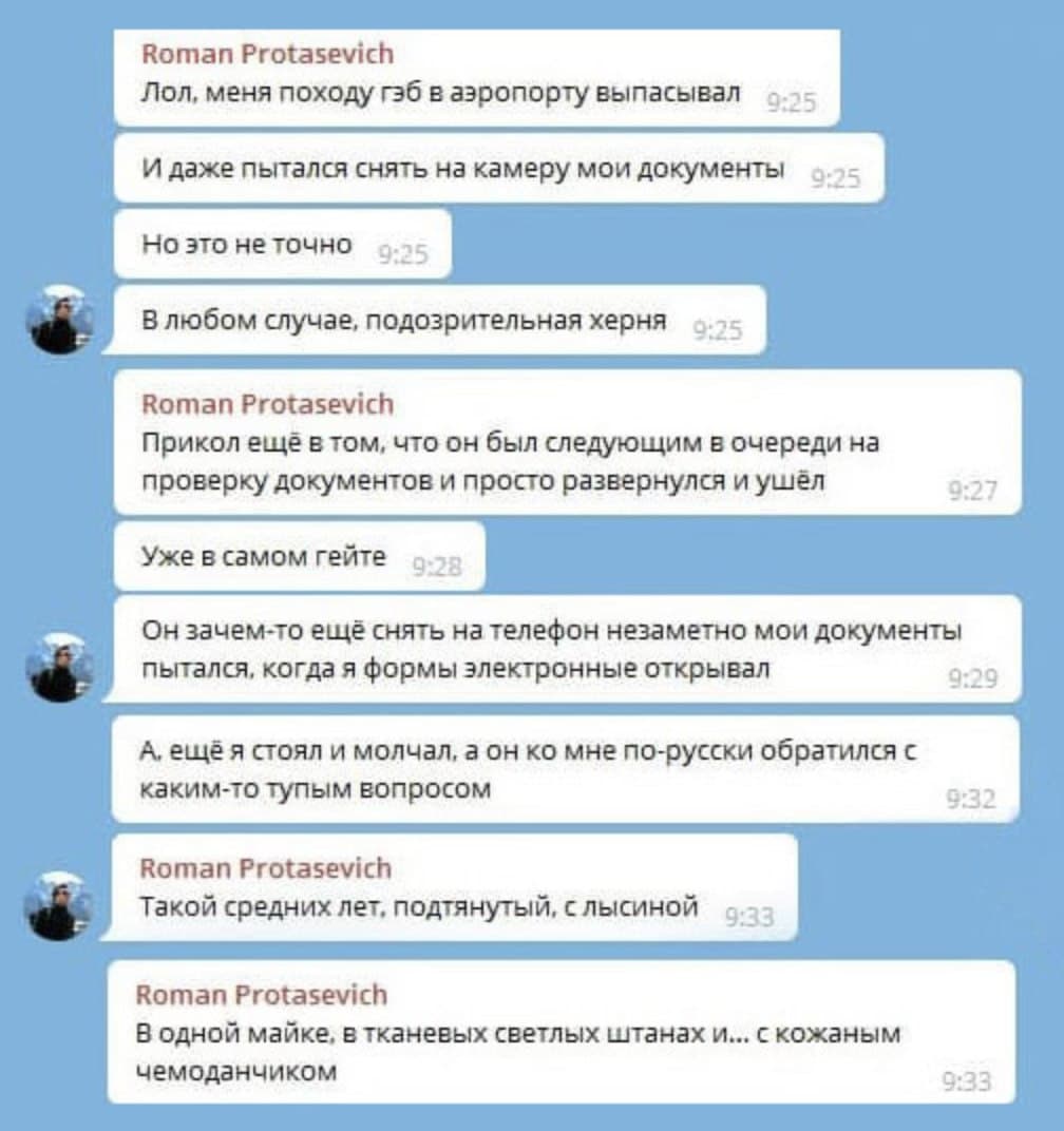 Телеграм-канал Nexta опубликовал последние сообщения Протасевича перед посадкой в самолет.