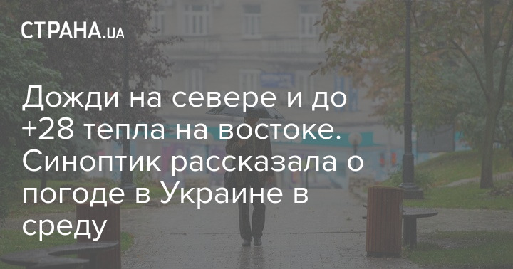 Температура воздуха, по данным синоптика, в течение дня составит +19...+23 градуса. На востоке, юге и в большинстве центральных областей предполагается +24...+28 градусов. По данным Диденко, в Киеве в среду ожидается периодический дождь и гроза. Температура воздуха будет колебаться около +20 градусов.