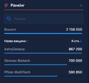 Данные о количестве полученных Украиной вакцин/health-security.rnbo.gov.ua/vaccination