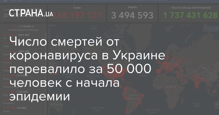 Число смертей от коронавируса в Украине перевалило за 50 000 человек с начала эпидемии