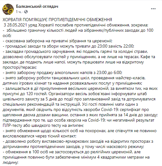 Кроме того в Хорватии отменили ограничение максимального количества лиц в общественном транспорте, при этом маски носить там обязательно.
