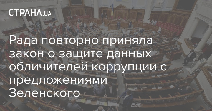 Верховная Рада повторно приняла законопроект №3450 с предложениями президента Владимира Зеленского о портале сообщений о коррупционных преступлениях.