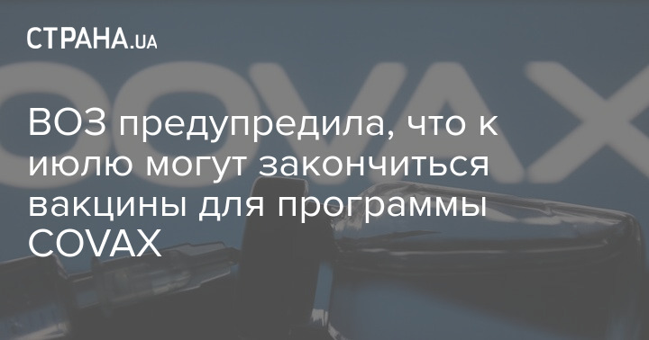 Во Всемирной организации здравоохранения заявили, что из-за нехватки вакцины от коронавируса для программы COVAX в июне-июле она может застопориться.